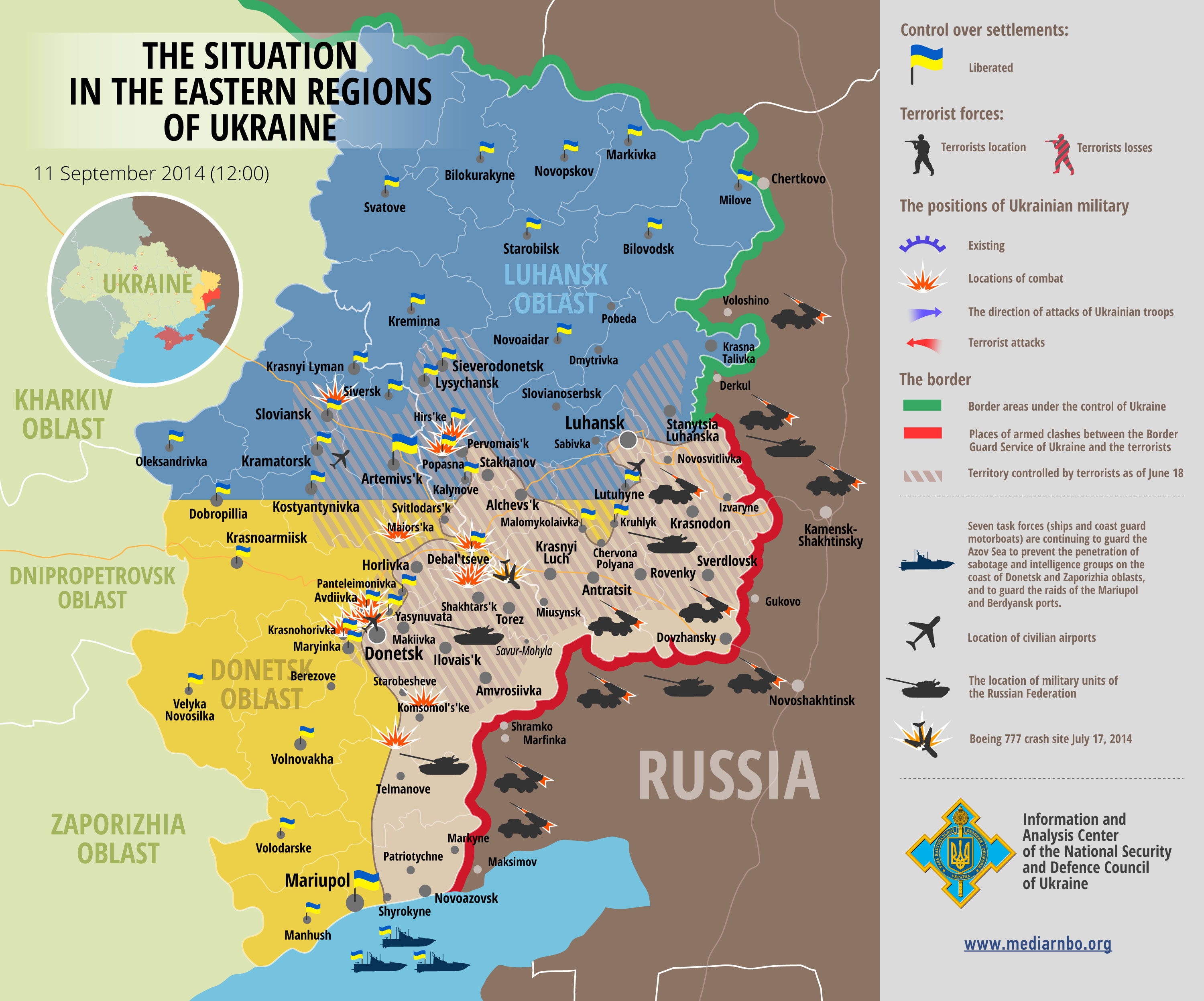 Last week’s ceasefire has held up better than I expected, but it is still very precarious. The good news, especially for civilians in the conflict zone, is that the level of violence is down considerably for where it was two weeks ago. On Wednesday, Ukrainian President Poroshenko claimed that some 70% of the Russian regular forces in eastern Ukraine had returned to Russia, while NATO reported on Thursday that the number of Russian regulars on Ukrainian soil was down to some 1000. It also appears that many of the Ukrainian servicemen caught behind Russian/pro-Russian lines when the ceasefire went into effect have made it back to Ukrainian-controlled territory. And there has been a significant number of prisoners exchanged.