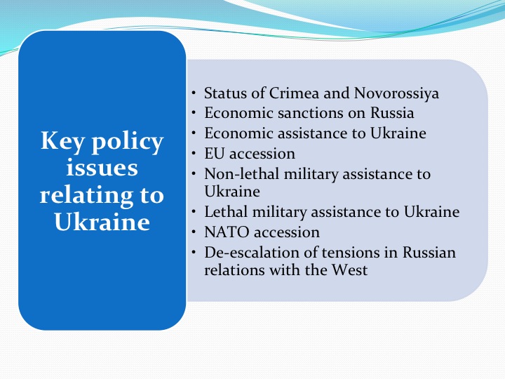 I will now turn finally to the specific dimensions of American policy toward Ukraine listed in my first slide.