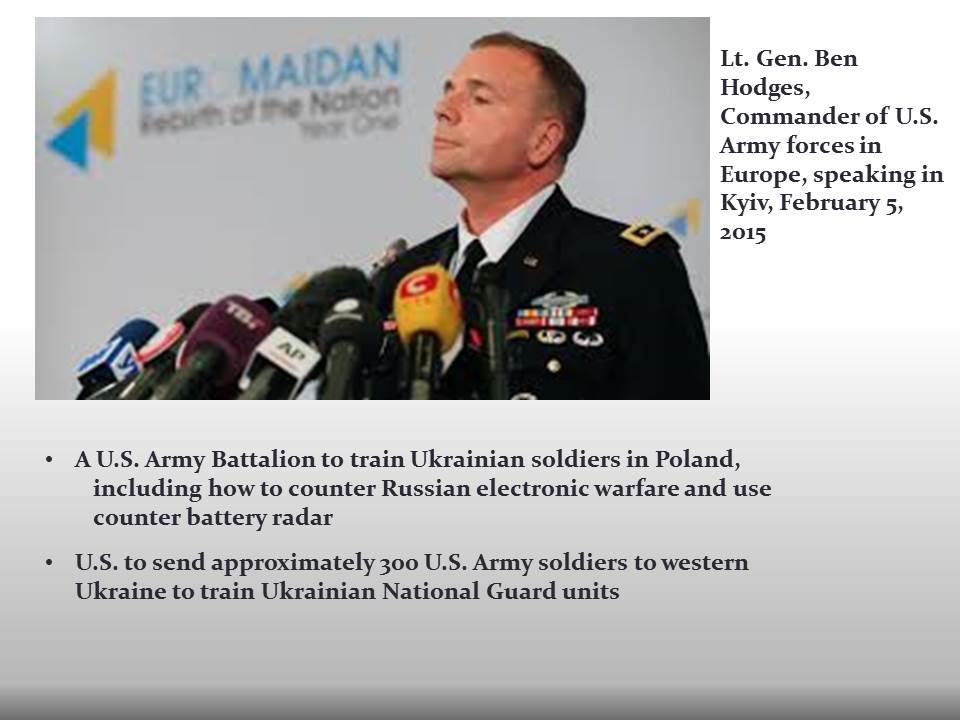 The U.S. is also continuing to help train Ukrainian forces. (The U.S. has been providing limited training assistance to, and carrying out occasional exercises with, the Ukrainian military for years.) Until recently, that training took place mostly abroad. In early February, however, Lt. Gen. Ben Hodges, commander of U.S. Army Forces in Europe, gave a press conference in Kyiv during which he confirmed that a U.S. Army battalion – around 300 solders – was being sent to western Ukraine to train Ukrainian national guard units, including instruction on how to counter Russian electronic warfare equipment and use counter-motar radars. The Brits, who recently provided Ukraine with lightly armored “Saxon” personnel carriers, also announced recently that they are sending 75 military instructors to Ukraine, while Poland, which has been training Ukrainian military instructors in Poland, will send 33. And there are reports that Georgia and Israel are helping train Ukrainian troops as well.