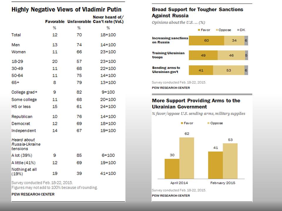 Finally, as suggested in the next slide, U.S. public support for lethal assistance to Ukraine has also been growing, although more (53%) still oppose it than support it (41%).
